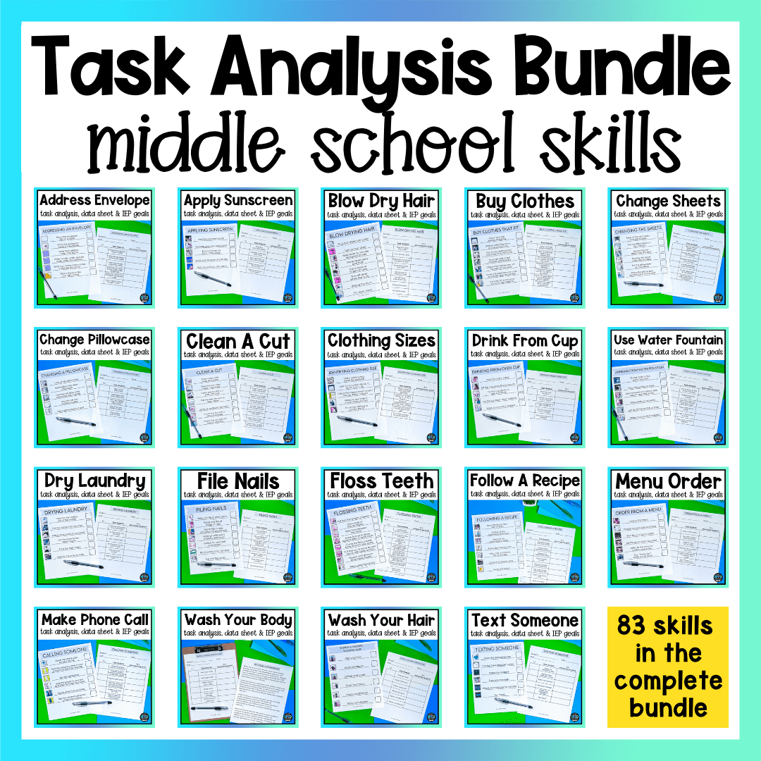 Looking to set up better routines in your special education classroom? If you have students looking to gain independence in their daily living skills, this is the resource you need! With this bundle, you will get access to a visual task analysis checklist focused on important life skills. These checklists serve as the perfect visual reminder for important real world tasks in activities of daily living for middle school students.