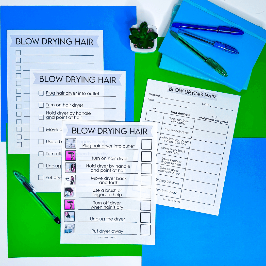 Task analyses, checklists, and visual supports like these are an evidence-based teaching strategy & support for autistic individuals across all ages and others who may benefit from additional support.
