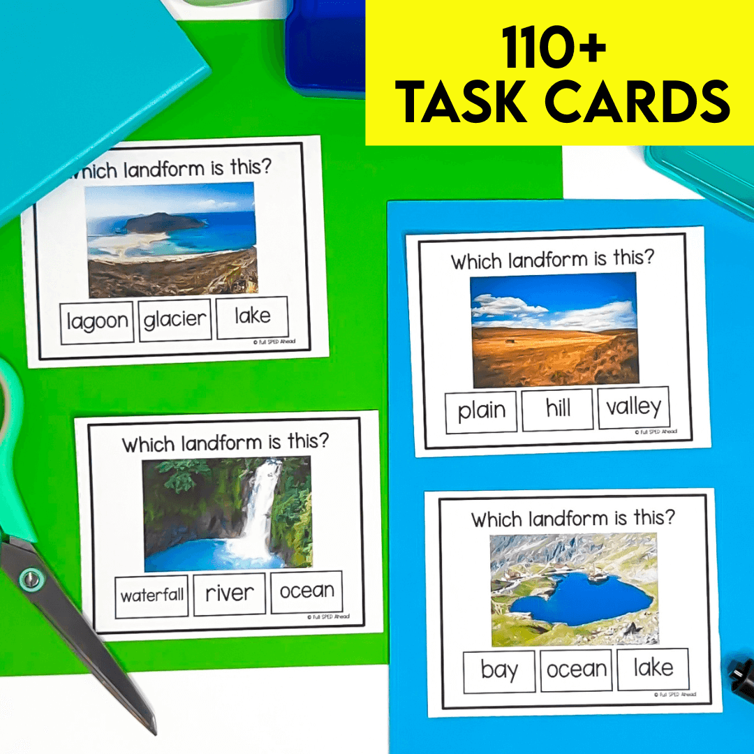 In your special education classroom, are you working on geography, map use and identifying landforms? Task cards are a great way for your students to work on their identification and understanding.